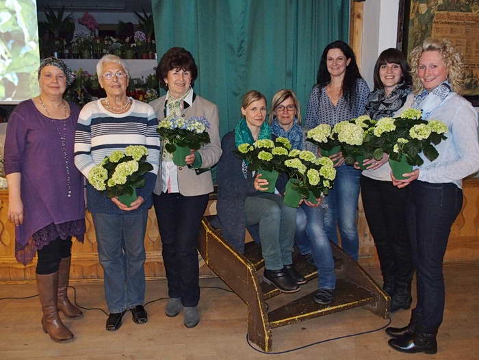 Vorsitzende Doreen Maierhofer begrüßte als Neumitglieder v.l. Elke Harbeck, Irmgard Helminger für Kathrin Lexhaller, Renate Göpperl, Evi Ufertinger, Sabine Frisch, Veronika Steinmaßl, Manuela Rehrl.
