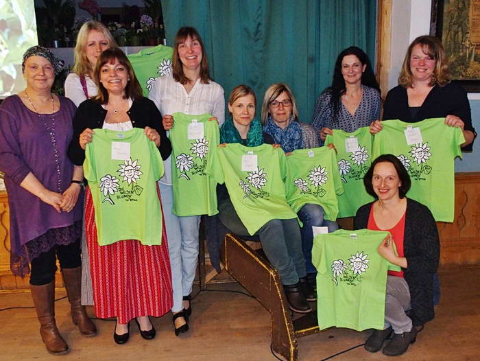 Neue Wilde Blumen sind: Gwendolin, Carolin und Anika Pflug, Anna Blank, Ronja Hofmeister, Benedikt Göpperl, Xaver Ufertinger, Romy Frisch, Laura Stecher und Johanna Sturm. Die Mütter nahmen das Wilde-Blumen-T-Shirt entgegen.
